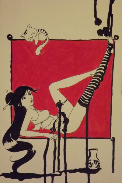 - Técnica e suporte: Lápis de cor aquarelado e bico de pena com nanquim sobre papel 300g/m;